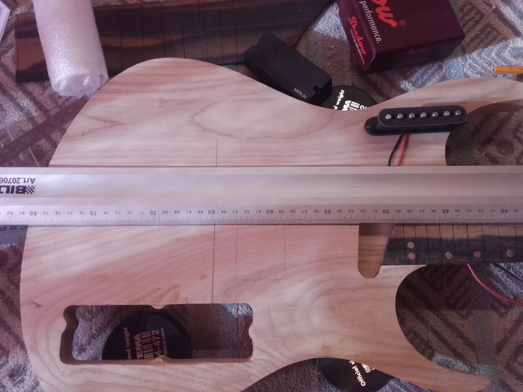 szacujęc: podstrunnica 6mm (nad topem), top 7-8mm, kieszeł korpusu 11mm = ~24,5 grubołę gryfu. Jest ok 11 mm w jesionie wyfrezowane?