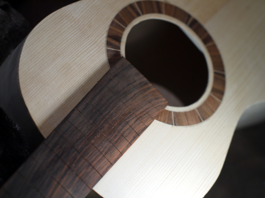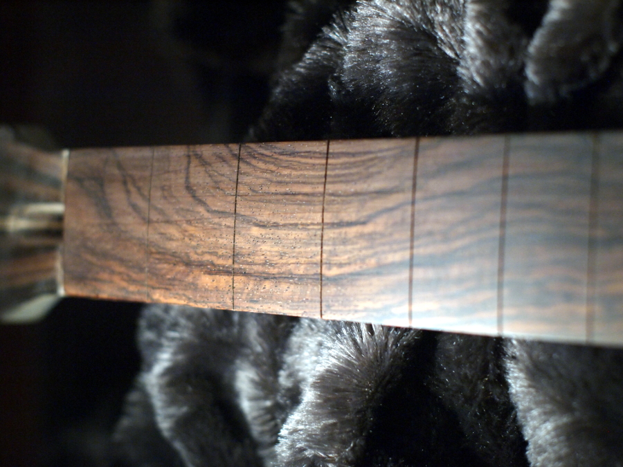 Włałnie skołczyłem podstrunnicę. Jest gotowa do przyklejenia lub nabicia progów i przyklejenia, kolejnołci jeszcze nie ustalono:) Sę plusy i minusy obu podejłę. Ja się skłaniam do częłciowego nabicia progów, na pewno wszystkich tych co są nad pudłem rezonansowym.