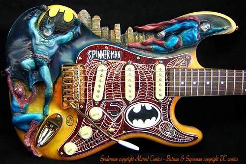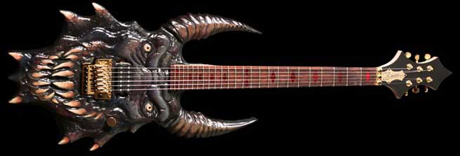 Te gitary które pokazałeł są piękne (zwłaszcza pierwsza ) chociaż ta ze smokiem i nietoperzem to już granica między dobrym smakiem a jego brakiem . No ale o gustach itd... To jak z jeleniem , na rykowisku wyględa pięknie a namalujesz i jest kicz . Krótko mówięc chodzi o to żeby nie przegięę tak jak np ten gołę : na zdjęciach poniżej :shock: