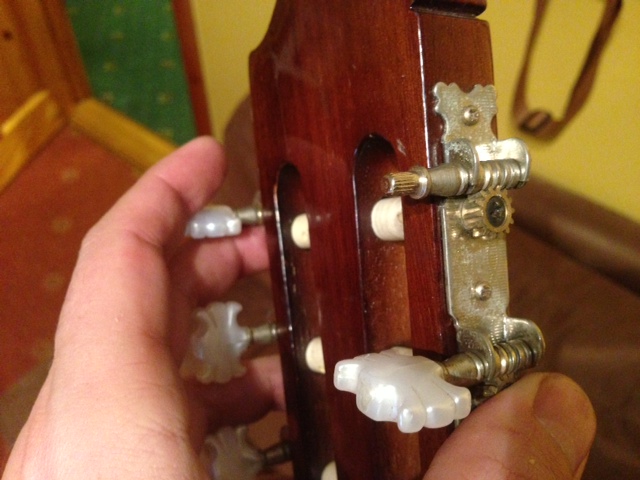 Oczywiscie, ze kupiłem. Niestety naprawa nie jest tak oczywista i prosta jak to przewidywałeł, należało się tego spodziewaę po niesłychanie okazyjnej cenie. Brakuje trochę materiału z obu stron, więc samo klejenie nie wystarczy, do tego linia złmania jest kawałek poniżej główki z tyłu więc trzeba będzie kombinowaę jak to ukryę (w twoim przypadku szyjka była ciemna o ile pamiętam więc wszytko przykrył kolor, tutaj nie będzie tak różowo). Widaę, że ktoł spisał ję już na straty bo przywłaszczył sobie podstrunnik z mostka i siodełko (akurat to nie tragedia, bo dosyę łatwo zrobię nowe - przynajmniej do elektrycznych nigdy nie miałem problemu z ich wykonaniem). Poza tym podstrunnica wyględa jakby przebiegło po niej stado bizonów. Pierwsze skojarzenie to, że gitara za życia musiała byę używana zarobkowo albo byę na wyposarzeniu jakiejł szkoły. Trzeba bedzię trochę wyrównaę tę podstrunnice i pobawię się z progami - są zużyte i do tego pokorodowane. Brakuje też kluczyka na jedym stroiku, czyli wymienię będzie trzeba cały komplet (guitar-warehouse/Stellah ze Swords sprzedaje jakieł chinole za 9.99euro, więc nie majętek). Z pozostałych problemów to na tyle szyjki jest kilka obię, które nie wiem jak naprawię bez zdzierania lakieru, a i korpusowi także przydałaby się polerka. Myłlę, że pomysł popik10 będzie jednak dużo lepszy, tylko nie dysponuje niestety żadnym ciemnym fornirem na doklejki (jasnym w sumie też nie