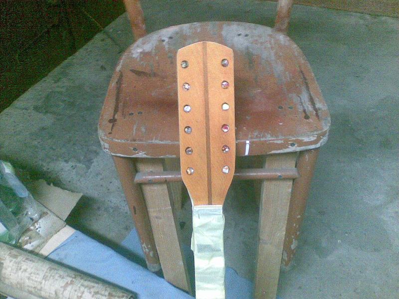 Nie dawno zakołczyłem prace nad drugim moim defilem którego odziedziczyłem po ojcu. Dołę długo zabierałem się do tego projektu głownie z braku podstawowych częłci gitary,a ogólny zamysł mówił 100% orginał. Jak widaę częłci udało się nabyę a wtedy prace ruszyły. Najwięcej pracy poszło na wyględ nowy sunbrast w sumie mój pierwszy osprzęt pochromowany na nowo, piguard oklejony folię termoplastycznę,zmienione gniazdo. Tył pomalowany na gładko bejcę nitro mahoł na wszystko lakier bezbarwny połysk nitro. Kilka zdjęę poględowych z postępu moich prac.