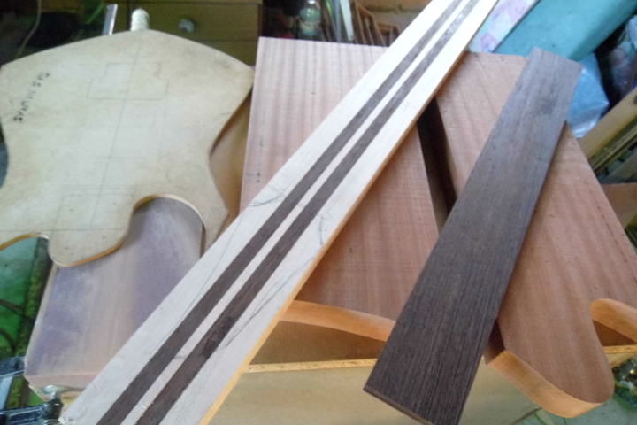 to jest klon -wenge. dostałem tego trochę od wujka i juz ponad rok albo pocięte i zwięzane siedzi albo już ponad rok w takich sklejonych czeka. a takiego efektu nie będzie bo to jest przygotowane na trapezoidalny kształt już 3 gryf taki robie i dla siebie nigdy więcej "C" albo "D" nie zrobie