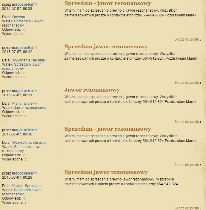 Witam, mam do sprzedania drewno jawor rezonansowy. Wszystkich zainteresowanych kupnem prosze o kontakt telefoniczny 664-942-824