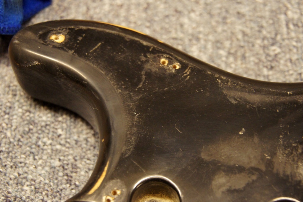 Co maja podwojne otwory pod wkrety do oryginalnosci? Fabrycznie byl singiel, miejsce na humba ktos robil chyba dynamitem. Gitara nie byla lakierowana, wszystko wyglada ok, fenderow z tych lat mialem w reku mase. Ze gitara wyglada jak wyglada coz, jest mocno eksploatowana. Darku nie pytam o wartosc gitary tylko o to czy ktos spotkal sie z podobnym problemem. Wartosc kilka lat temu ocenil Allen wlasciciel AVH.