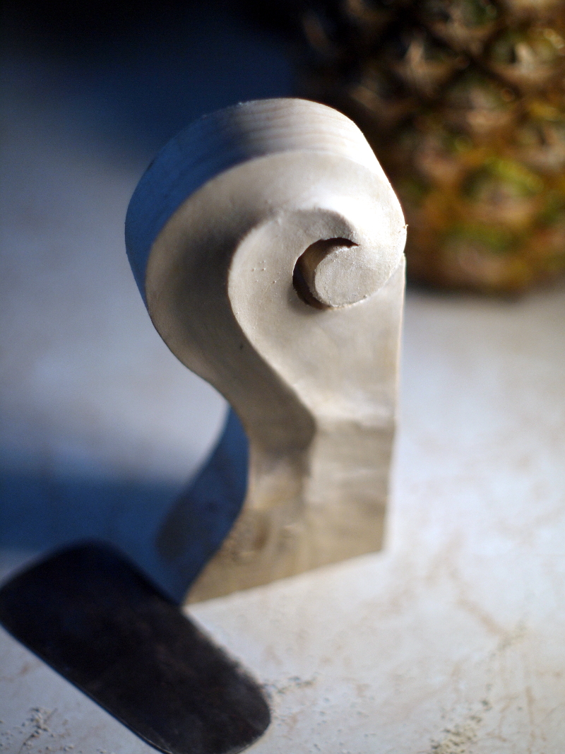 Mikołaj przyniósł dwa fajne dłutka - więc postanowiłem ruszyę temat mandoliny F. Jako, że 3 komplety poklejonych plecków i topów (jawor/łwierk)już kilka miesięcy leżakuję, to ęwiczę sobie łlimura. Topologia rozeznana, trzeba będzie jeszcze pogłówkowaę nad głębokołcię zwojów. Co prawda plany Gibsona są na pokładzie, ale wiadomo, każdy szuka swego. Jełli są chętni do pogadania o mandolinach - to będę wklejał jakieł fotki z projektu, przygotowywania materiału i chociażby takie nocne zabawy z fajnym dłutkiem i lipowym klockiem;) Protołlimak zgrubnie wyciosany.