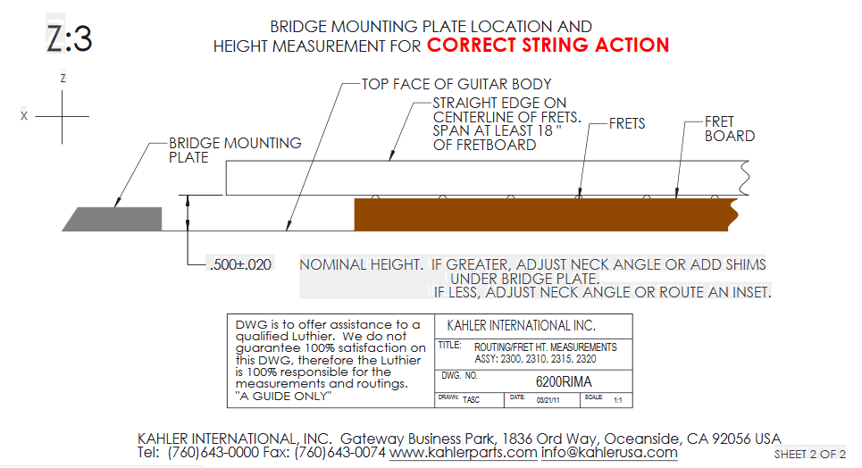 Chcę zamontowaę sobie takowy most w nowo budowanej gitarze. Problem wydaje mi się w wysokołci podstrunnicy wraz z progami w stosunku do samego mostu. Gitara ma gryf przechodzęcy przez korpus i jego płaszczyzna czołowa ( bez podstrunnicy ) jest równa z korpusem. Instrukcja montażu tego mostu ( nie jestem dobry z angielskiego ) pokazuje, że podstrunnica z progami powinna mieę wysokołę 0.500 +- 0.020 cala czyli 12,7 mm. w stosunku do płaszczyzny korpusu !