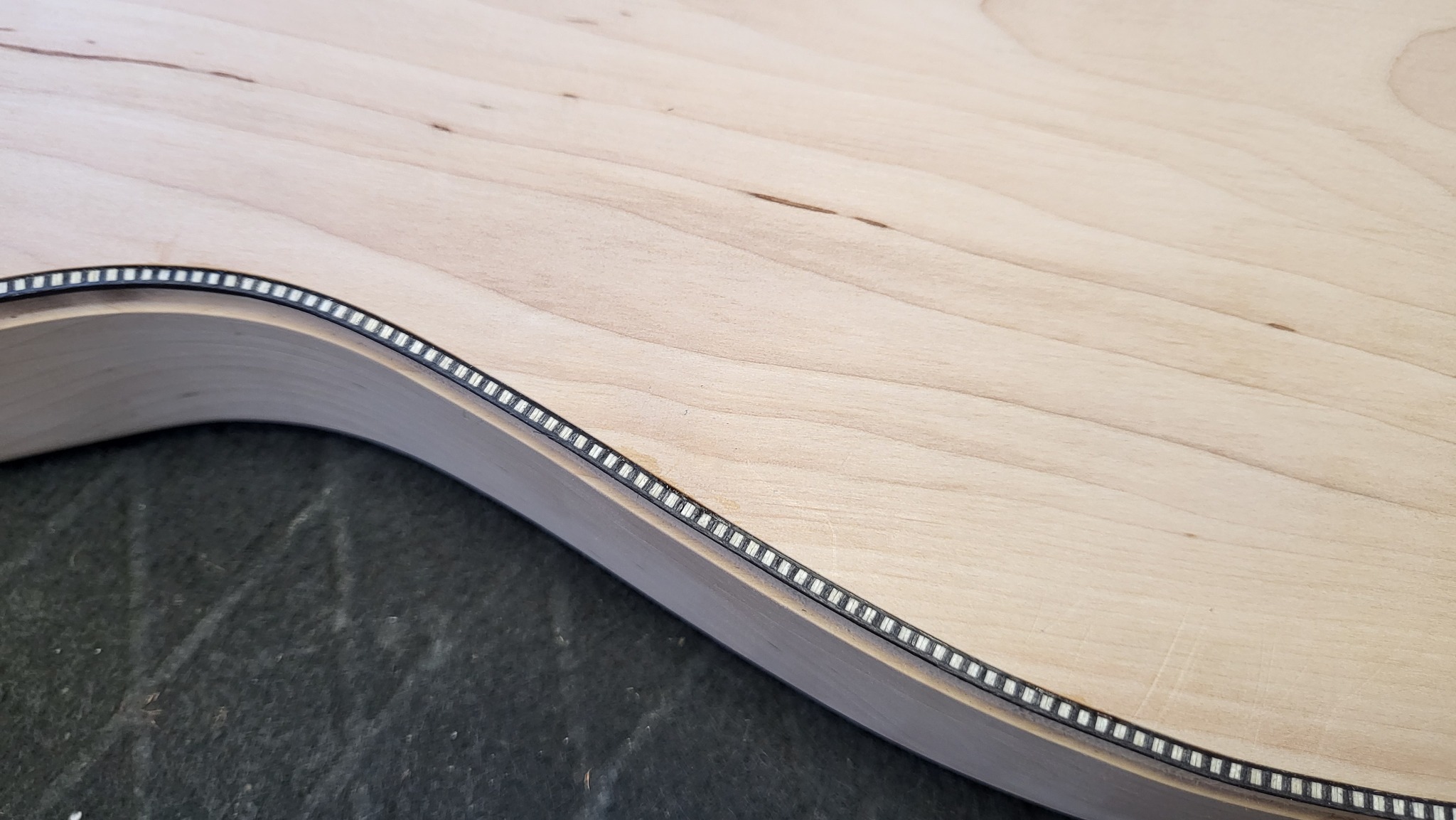Pręt osadzony, podstrunnica przyklejona. Nie planowałem bindingu, ale kiedy wyrównywałem podstrunnicę do gryfu okazało się,ze nie zmieniłem łożyska we frezie i poszło frezowanie pod bindę. Takze będzie binda.