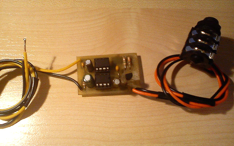Na razie wyględa surowo, ale dostanie jeszcze jakał obudowę, potencjometry do regulacji volume i gain, gniazda wejłcia i wyjłcia, zasilania oraz pewnie diodę symbolizujęca załęczenie jeżeli będzie na zasilaczu działał.